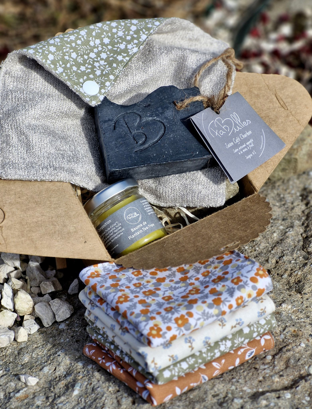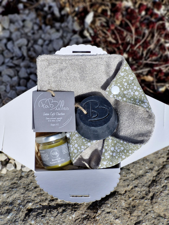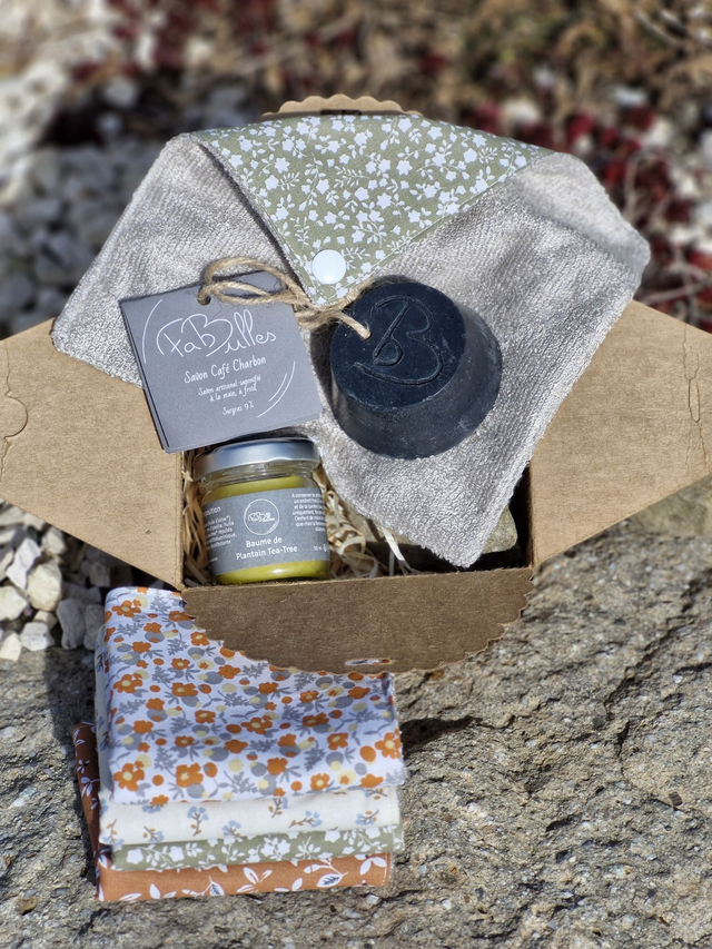 • Pochette tissus pour transporter le savon lors des déplacements. Elle pourra servir également de petite lingette. Parfaite pour une vie en mouvement ! ou un Filet antigaspi pour un contact tout doux.